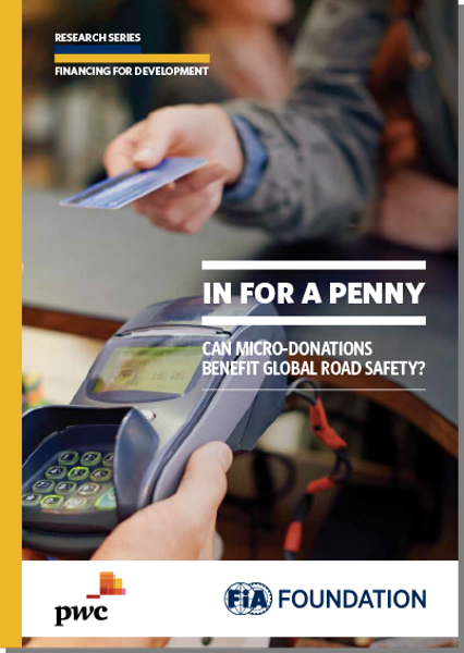 'In for a Penny: Can micro-donations benefit global road safety?' is a research report by Price Waterhouse Coopers examine the potential of corporate/consumer micro-donations as a new source of funding for global road safety.
